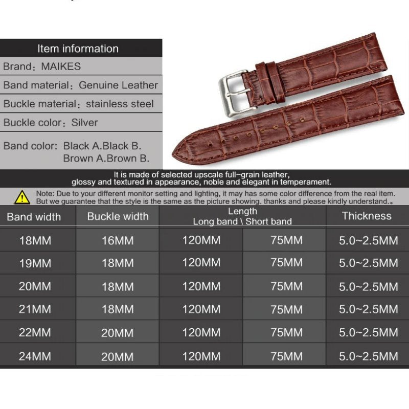 • Band Width (0.83 / 21 mm), Buckle Width (0.79 in / 18 mm), Band Length ( 4.7+2.95 / 120+75 mm), Thickness ( 0.1-0.2 / 2.5-5 mm)