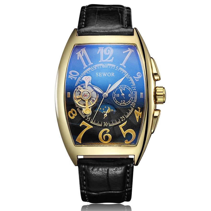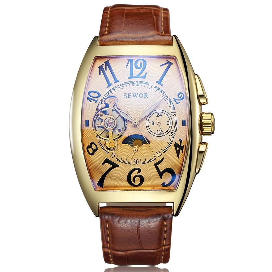 The Enzo Mechanical Business Watch is the perfect accessory for any occasion. Created with a stainless steel case, scratch-resistant dial window made from mineral glass and leather band that will never go out of style - you can wear it anywhere from work to dinner in just about any setting. This elegant timepiece is water-resistant up until 3 bars and features an automatic self-winding with a moon phase option so this stylish watch helps make time management easy and fashionable like never before.