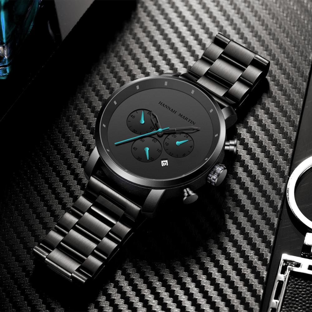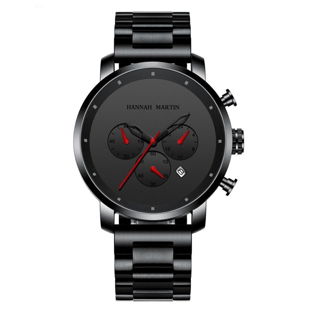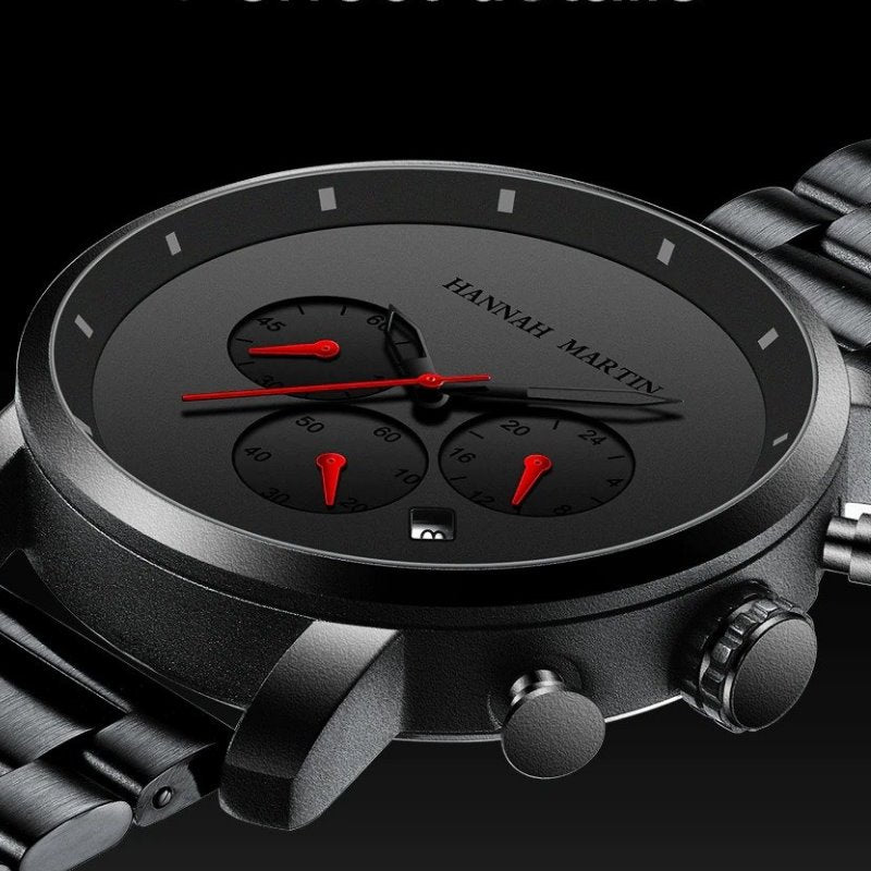 This Gilbert Minimalist Chronograph Watch will upgrade your look in seconds. The case and band for this elegant timepiece are created from sturdy stainless steel that won't tarnish or get easily scratched over time making it a durable yet stylish accessory to have around. It features water resistance of up to 3bars, quartz movement with date and calendar display and chronograph to make your life easier with style. The Gilbert Minimalist Chronograph Watch is available in 3 colours option with red, blue or black dial hand to match your style with ease.