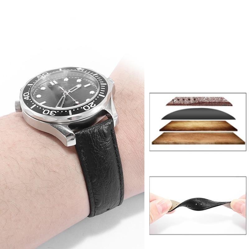 Dress up your watch with the Iris Ostrich Pattern Leather Watch Strap With Deployant Clasp. This stylish strap is made out of soft leather and has a minimalistic silver-toned clasp. It offers durability, comfort and style available in natural or bright colours to match with your favourite timepiece or make it extra-special for any occasion.