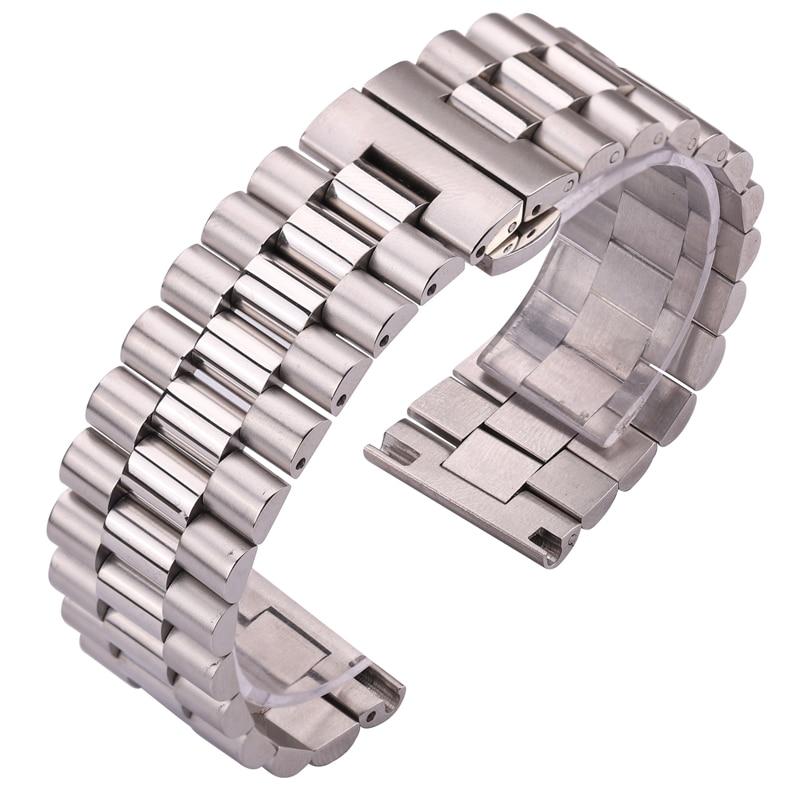 The Jules Stainless Steel President Watch Bracelet With Butterfly Clasp is a sleek, simple and stylish watch strap. The stainless steel will never tarnish or get easily scratched and the elegant design compliments any timepiece just in seconds with its minimalistic look that matches any style perfectly. You can be sure this durable watch strap won't slip off even during the busiest days thanks to the elegant butterfly clasp with a shiny finish that will upgrade your wrist just in seconds.